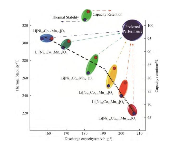 NCM 中,鎳是主要的氧化還原反應(yīng)元素,因此,提高鎳含量可以有效提高NCM 的比容量。高鎳含量NCM材料(Ni的摩爾分?jǐn)?shù)≥0.6)具有高比容量和低成本的特點,但也存在容量保持率低,熱穩(wěn)定性能差等缺陷。高鎳 NCM 材料的性能和結(jié)構(gòu)與前驅(qū)體的制備工藝緊密相關(guān),不同的條件直接影響產(chǎn)品的最終結(jié)構(gòu)和性能。