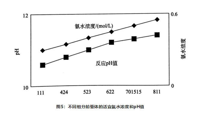 溫度主要是影響化學(xué)反應(yīng)速率。在前驅(qū)體的反應(yīng)中,溫度越高反應(yīng)速率越快,但是溫度過高會造成前驅(qū)體氧化,進(jìn)而造成反應(yīng)過程無法控制、前驅(qū)體結(jié)構(gòu)改變等問題,所以在不影響反應(yīng)的前提下溫度盡量高一點。在反應(yīng)過程中pH會隨著溫度的降低而升高,所以維持溫度的恒定也很重要。