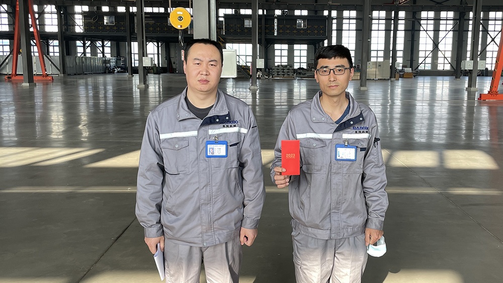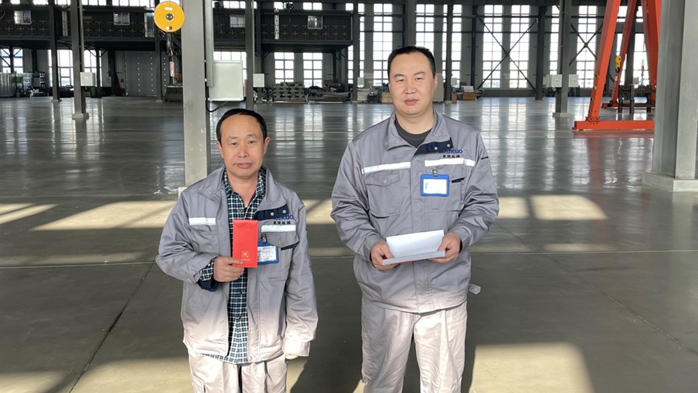 秦皇島曼國裝備科技有限公司3月31日,在曼國廠區(qū)表彰了生產(chǎn)部的2位先進模范,并頒發(fā)了獎金。